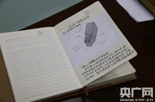 梁偉幾十萬字的手寫工作筆記,圖文并茂。央廣網(wǎng)記者 王晶攝