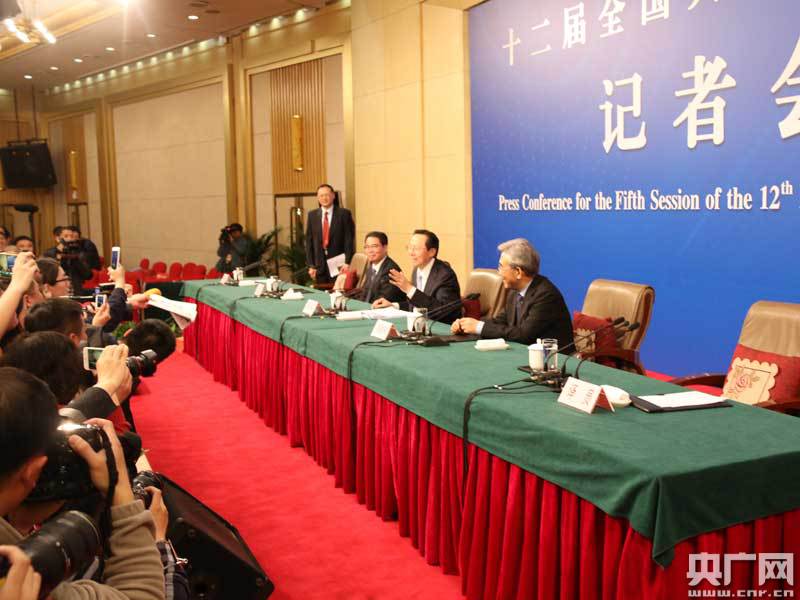 3月7日上午,十二屆全國人大五次會議召開的記者會。農(nóng)業(yè)部部長韓長賦答中外記者問。(央廣網(wǎng)記者 吳海波 攝)