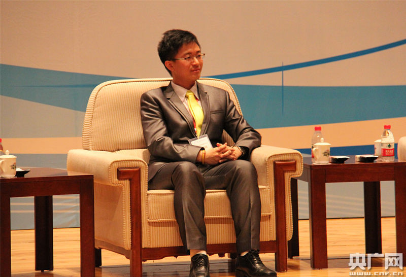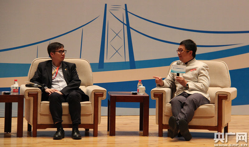臺灣新黨新思維主任候漢廷在開幕式上表示,可以在兩岸交流溝通時融入影視、娛樂、文化等,真正讓兩岸青年結(jié)合到一起。同時他表示,希望兩岸可以通過互聯(lián)網(wǎng)進行更多的良性交流。(央廣網(wǎng)記者 劉一荻 攝)