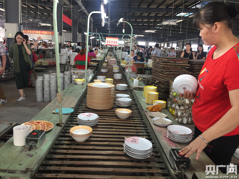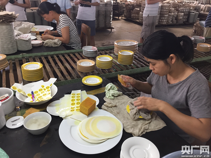 央廣網容縣7月5日消息(記者王曉蕾)108道工序、1300度高溫燒制,一件件精美的陶瓷就這樣從這間廠房的生產線銷往全國各地,甚至還出現在了外國人的餐桌和重大活動中!肮疽恢痹谟眯袆盂`行‘一帶一路’倡議,F在,我們的陶瓷75%以上會出口到歐洲、美洲、東南亞等160多個國家和地區(qū)”,三環(huán)集團總經理林鷹拿著一件燒制好的茶杯對記者說到。