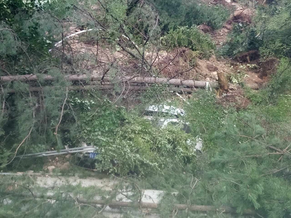被樹(shù)木砸中“埋起來(lái)”的小轎車(chē) 楊富利供圖