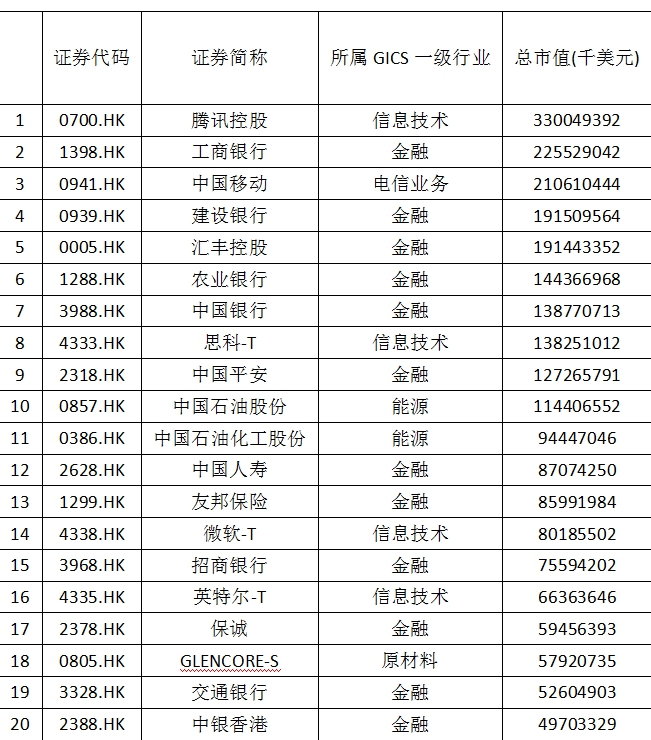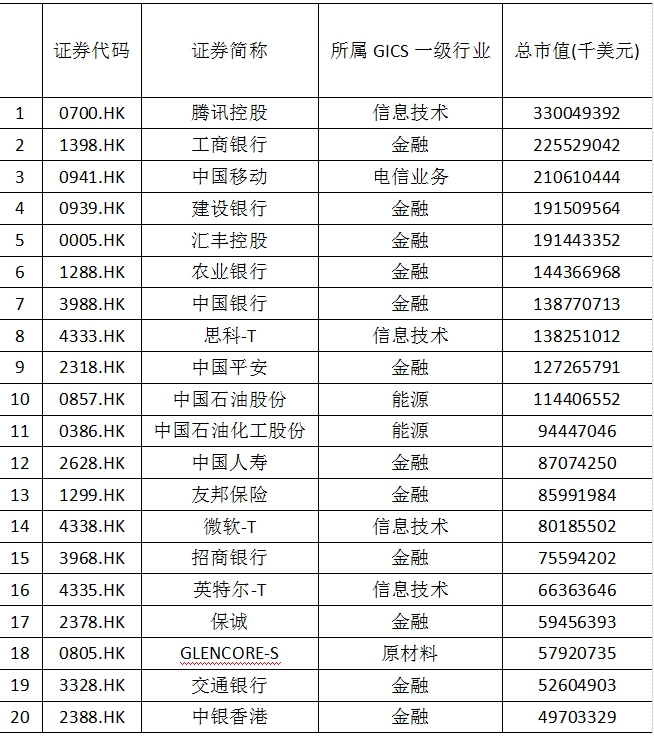 同樣,港股公司中信息技術(shù)高科技公司也靚影漸現(xiàn)。而從A股前20名市值上市公司中將難覓信息技術(shù)、日常消費和醫(yī)療保健三大板塊的蹤影,主要集中于銀行和采掘等國有企業(yè)。