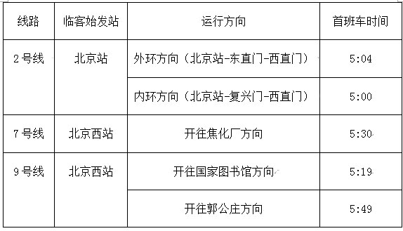 附:2月19日至3月18日北京站、北京西站首班車時(shí)間