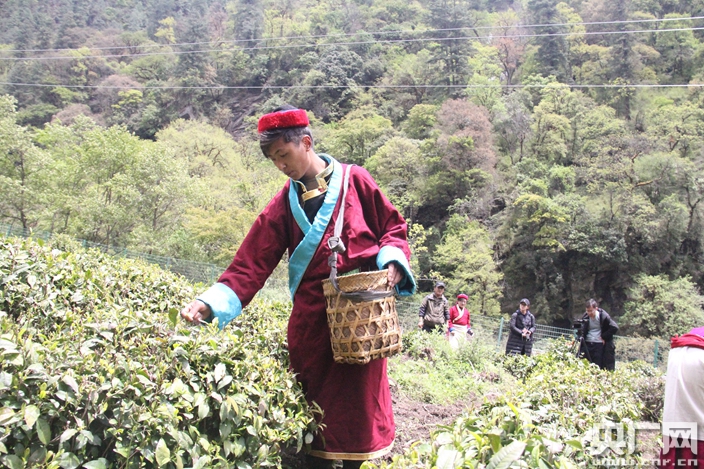 央廣網(wǎng)山南5月19日消息(記者劉一荻)在距離錯(cuò)那縣城52公里的勒門巴民族鄉(xiāng),有著不同于縣城的美麗景色。這里四周環(huán)山、海拔低、層巒疊翠、氧氣充足,成了錯(cuò)那縣的一張旅游新名片。今年24歲的格桑次仁穿著門巴族特色服裝在山下的茶園中手法嫻熟地采摘著茶葉。不一會(huì)兒,他身上背著的小筐已經(jīng)裝了不少色澤油亮的嫩芽。藍(lán)天、白云、綠茶、流水和鮮艷的民族服裝形成了一道亮麗的風(fēng)景線。