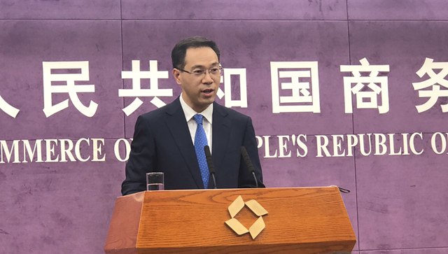商務(wù)部新聞發(fā)言人高峰回答記者提問 央廣網(wǎng)記者 高藝寧攝