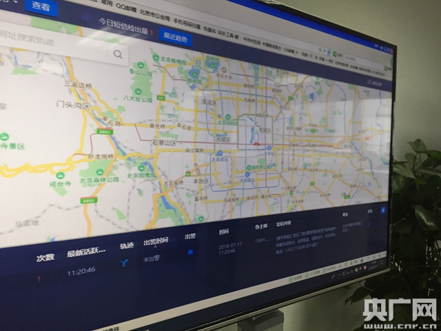 北京市反電信詐騙中心的實(shí)時(shí)警情監(jiān)測(cè)地圖(央廣網(wǎng)記者 孫冰潔 攝)