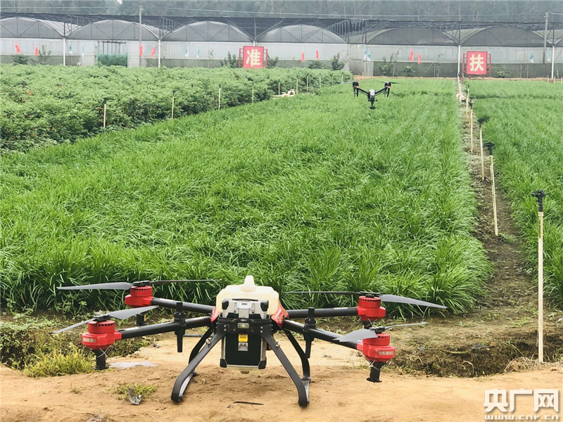 中化農(nóng)業(yè)雷州MAP示范園的無人機進行植保作業(yè)。(央廣網(wǎng)記者 高藝寧 攝)