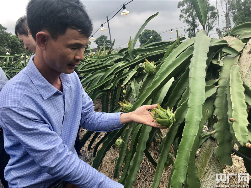 火龍果種植大戶蘇義杰介紹火龍果增產(chǎn)增收過程。(央廣網(wǎng)記者 高藝寧 攝)