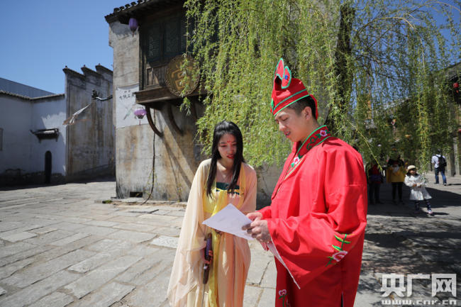 游客在專業(yè)劇組的配合下出演角色。(央廣網(wǎng)記者 韓靖 攝)