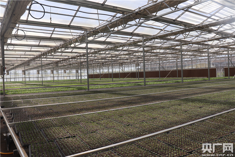姚磨冷涼蔬菜示范基地集生產(chǎn)、育苗、加工、冷鏈、銷售為一體,采用“合作社+基地+農(nóng)戶”的運(yùn)營模式,創(chuàng)立了統(tǒng)一規(guī)劃、統(tǒng)一育苗、統(tǒng)一種植、統(tǒng)一服務(wù)、統(tǒng)一管理、統(tǒng)一銷售的“六統(tǒng)一”發(fā)展模式。圖為姚磨冷涼蔬菜示范基地的育苗室。(央廣網(wǎng)記者 母晨靜 攝)