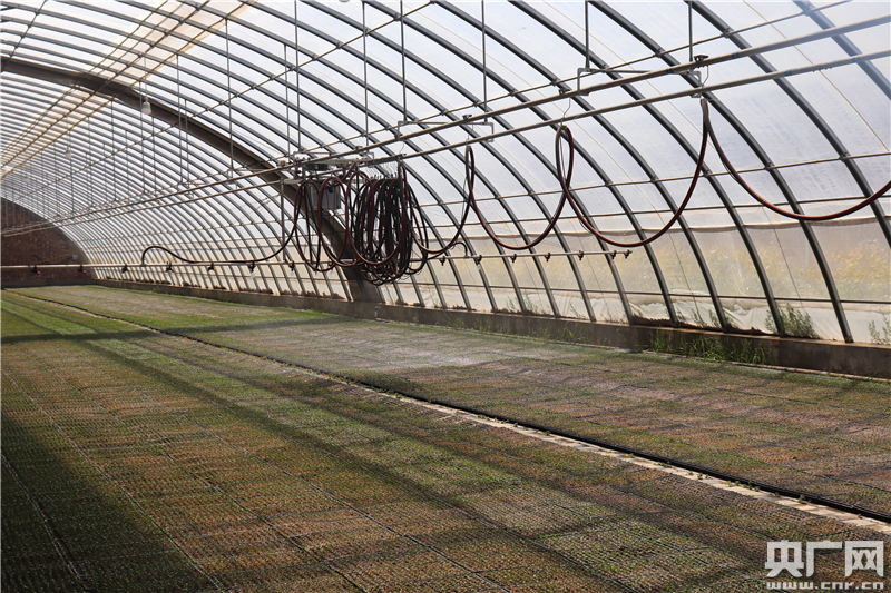圖為育苗室內(nèi)的智能化噴灌設(shè)備。(央廣網(wǎng)記者 母晨靜 攝)