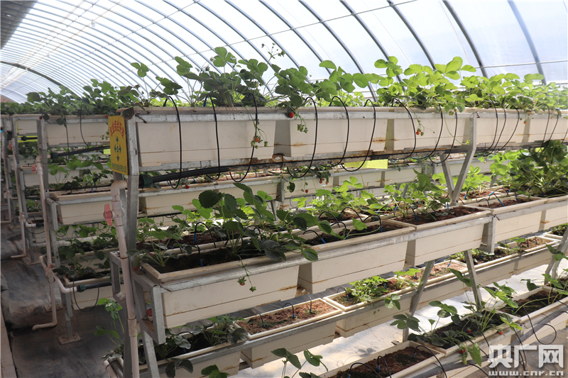 目前,蔬菜基地的物聯(lián)網(wǎng)設(shè)備能及時(shí)預(yù)測(cè)氣象災(zāi)害、病蟲害,有效降低災(zāi)害損失。此外,基地還可通過視頻監(jiān)控系統(tǒng)和移動(dòng)終端APP,實(shí)現(xiàn)透明化生產(chǎn)管理。圖為裝有物聯(lián)網(wǎng)設(shè)備的草莓日光溫室。(央廣網(wǎng)記者 母晨靜 攝)