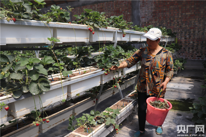 原州區(qū)瑞豐、眾豐及興民等合作社牽頭,帶動(dòng)210戶農(nóng)戶參與基地建設(shè),其中建檔立卡戶43戶。當(dāng)?shù)剞r(nóng)民除種植蔬菜所獲收益外,每天在基地打工的人數(shù)超過350人。在有效增加農(nóng)民收入的同時(shí),利于轉(zhuǎn)變傳統(tǒng)種植觀念,促進(jìn)蔬菜產(chǎn)業(yè)長(zhǎng)足發(fā)展。圖為一名工人在清理干枯的草莓葉子。(央廣網(wǎng)記者 母晨靜 攝)
