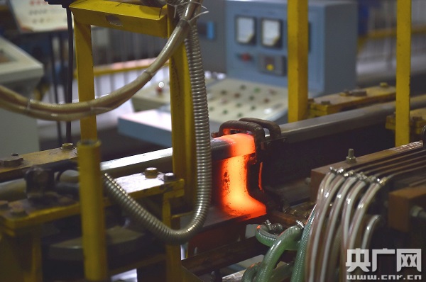 記者現(xiàn)場(chǎng)看到,正火過(guò)程中,焊接部位通紅,最高溫度達(dá)到890攝氏度。