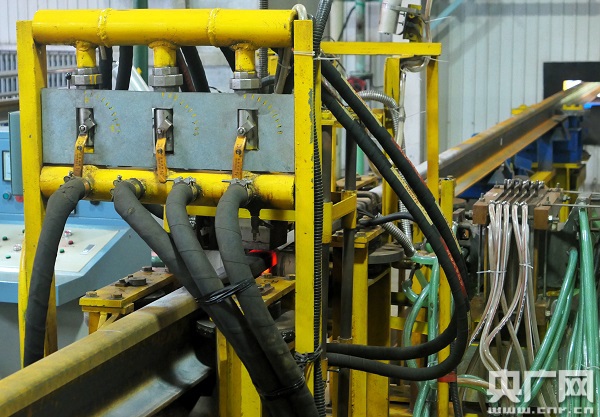 鋼軌正在進(jìn)行二次“美容”(央廣網(wǎng)記者王晶 攝)