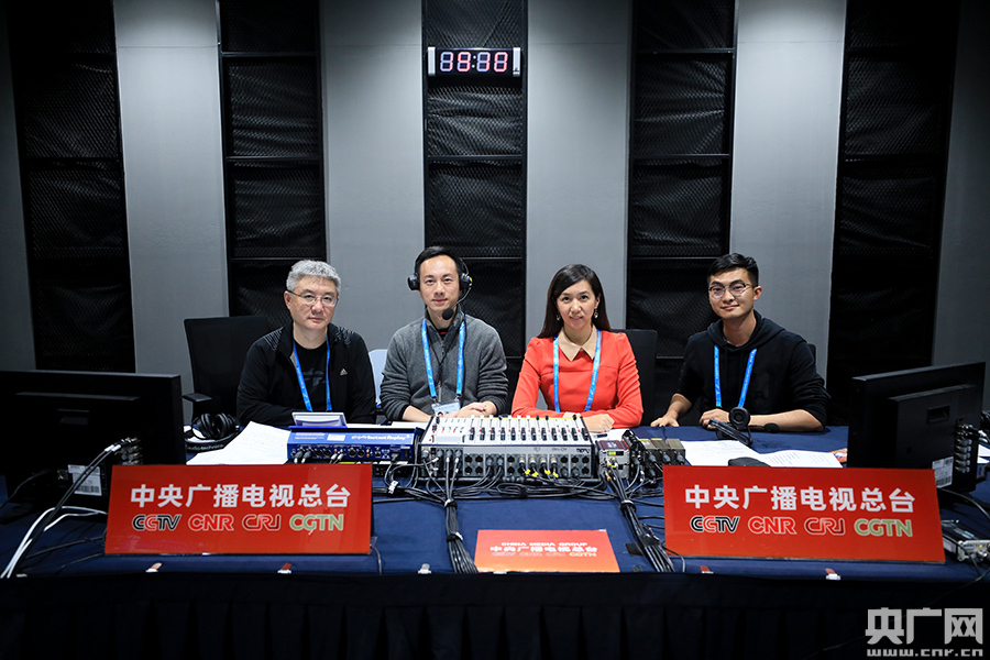 10月27日晚,第七屆世界軍人運動會閉幕式在武漢體育中心體育館舉行。圖為,中央廣播電視總臺央廣現(xiàn)場直播團隊(央廣網(wǎng)記者 石昊鑫 攝)