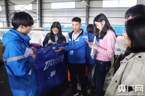 包裹轉(zhuǎn)運袋可重復使用至少100次 央廣網(wǎng)記者王晶 攝