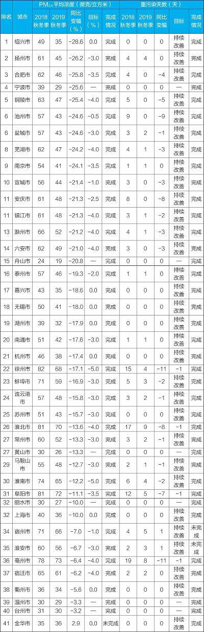 長三角地區(qū)秋冬季空氣質(zhì)量目標(biāo)完成情況(央廣網(wǎng)發(fā) 生態(tài)環(huán)境部供圖)