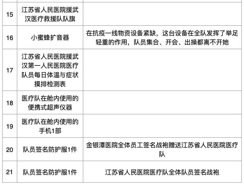 附:捐贈物列表
