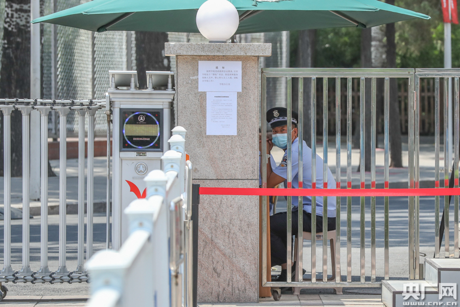 6月18日,中國(guó)人民大學(xué)附屬中學(xué),一名保安正在校園門口執(zhí)勤(央廣網(wǎng)記者 韓靖 攝)