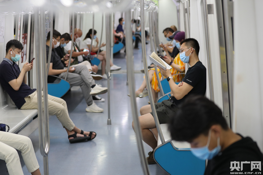 6月18日,乘客佩戴口罩出行(央廣網(wǎng)記者 韓靖 攝)