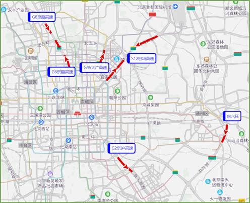 預(yù)計下周工作日早、晚高峰期間,東、北部城區(qū)的二、三、四環(huán),西二環(huán)、建外大街、通惠河北路、西直門北大街等主要道路,肖家河橋區(qū)、通行壓力較大,京藏高速、京承高速、京通快速等將出現(xiàn)進(jìn)、出京潮汐車流。