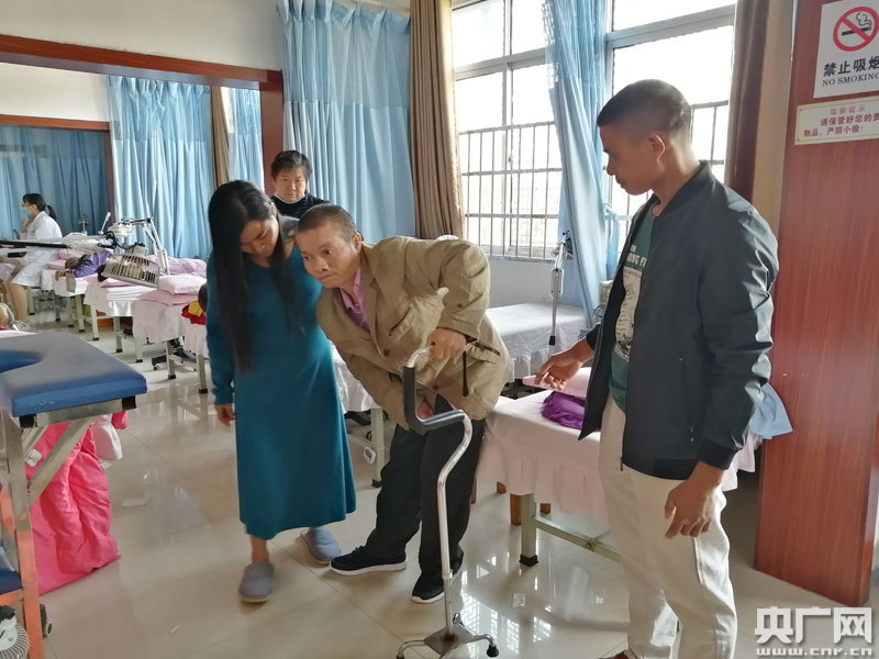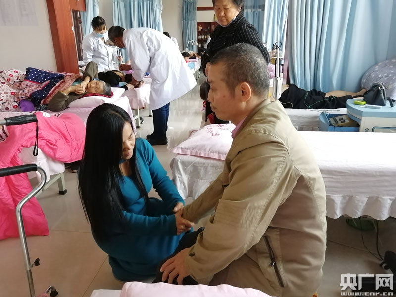 吳樣帶在康復(fù)中心為哥哥按摩(央廣網(wǎng)發(fā) 通訊員供圖)
