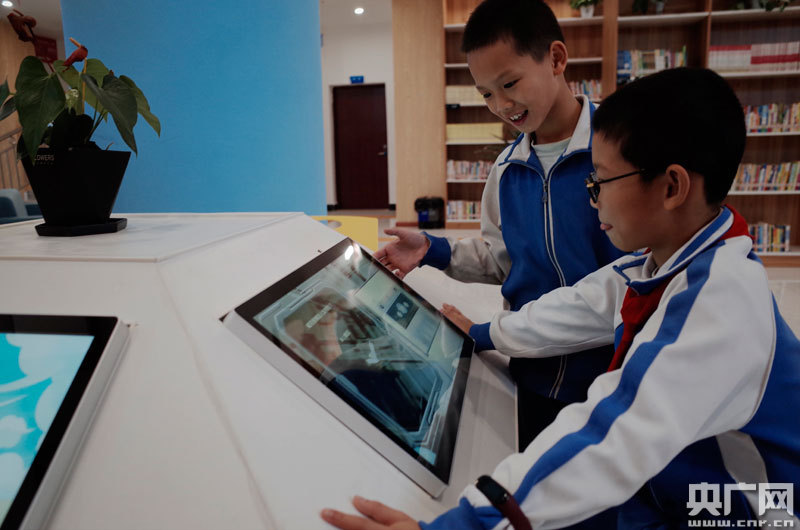 圖為學(xué)生們正在體驗(yàn)圖書知識競答(央廣網(wǎng)記者 胡斐 攝)