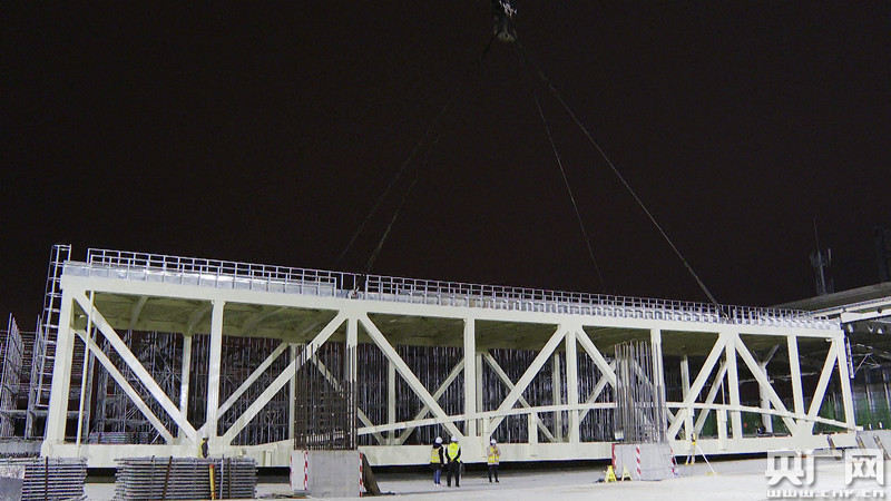 天橋吊裝到位(央廣網(wǎng)發(fā) 蔣榮良 攝)