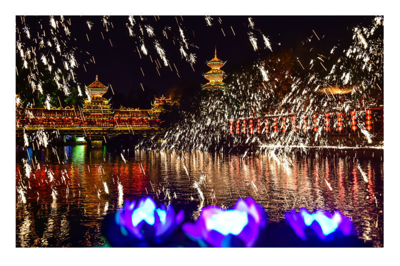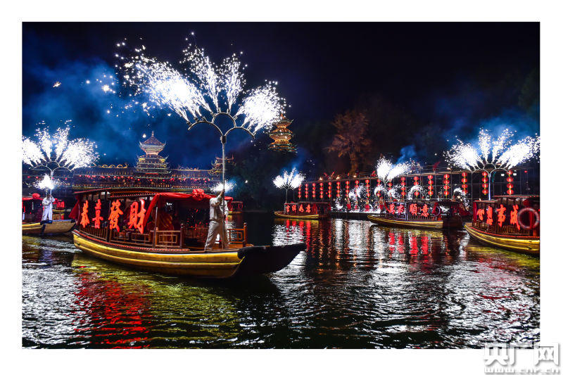 晚上的非遺絕技——重慶銅梁鐵水鋼花表演,萬盞色彩絢麗、五彩繽紛的吉祥花燈,全新推出的“水上彩船巡游”,精彩壯觀,美輪美奐,讓游客驚嘆不已,在錦繡中華·民俗村度過一個歡樂的中國年。 據(jù)悉,今年的春節(jié)大廟會從1月20日開始,將會持續(xù)到2月11日。在元宵節(jié)來臨時,還將會有傳統(tǒng)的逛花燈、猜燈謎、賞燈詩、話燈聯(lián)、放河燈、吃元宵等精彩活動,讓市民在錦繡中華·民俗村過一個紅紅火火的元宵佳節(jié)。