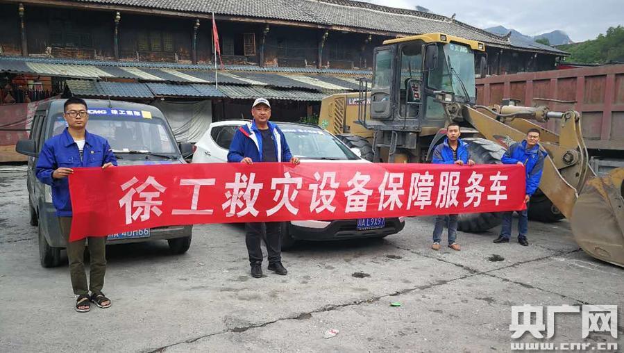 正在災(zāi)區(qū)中心現(xiàn)場作業(yè)的徐工挖掘機 徐工的救援集結(jié)令也獲得當?shù)赜脩舴e極響應(yīng)與支持,其中茂縣用戶趙如良是當?shù)攸h員代表,他不懼可能再次發(fā)生泥石流風險第一時間進入災(zāi)區(qū)力腹地,支援搶險,并安排機手祝桑建及宋起正立刻停止沙場工作,駕駛兩輛徐工LW500KN裝載機前往救災(zāi)現(xiàn)場,于24日14:12分到達茂縣應(yīng)急搶險點。他表示讓徐工的領(lǐng)導放心,作為徐工的客戶會和徐工一起,全力以赴做好救災(zāi)工作。成都歐博能公司接到指令后立刻組織兩輛服務(wù)車,三名服務(wù)人員,帶好配件于下午3:00出發(fā)前往一線,服務(wù)人員趙毅放棄大專結(jié)業(yè)考試,主動跟隊前往一線。 -