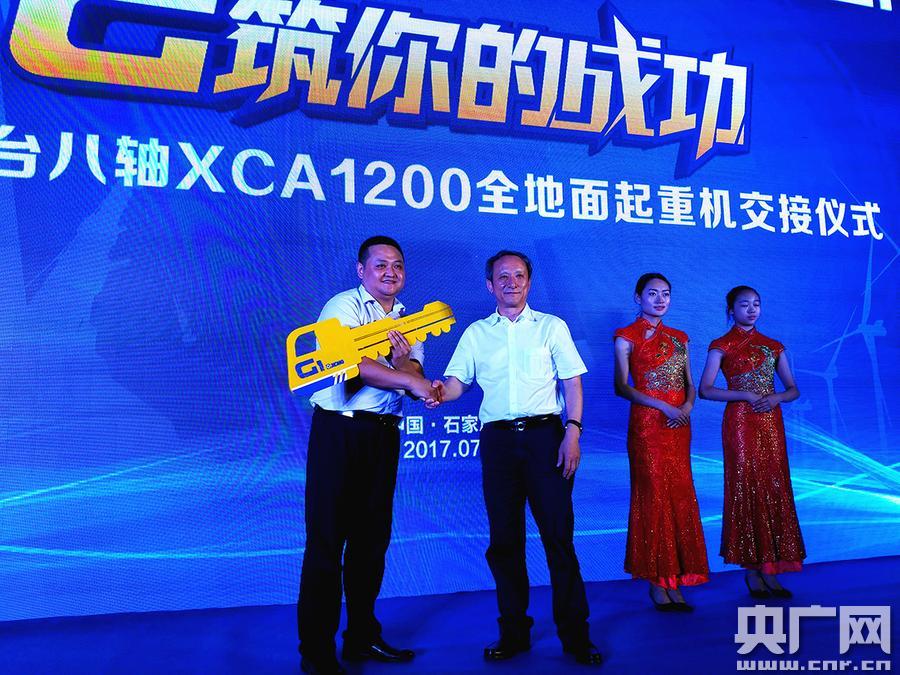 徐工集團(tuán)董事長(zhǎng)王民將XCA1200金鑰匙交付用戶手中 央廣網(wǎng)南京7月12日消息(記者楊守華 通訊員孫冬杰)來(lái)自全國(guó)風(fēng)電吊裝領(lǐng)域的數(shù)百位企業(yè)家近日齊聚河北石家莊,共同見(jiàn)證了全球首臺(tái)八軸千噸級(jí)全地面起重機(jī)交接儀式。徐工“G筑你的成功”全國(guó)風(fēng)電領(lǐng)域大客戶會(huì)議、徐工G一代區(qū)域新品推廣會(huì)、“G能大咖”徐工起重機(jī)械事業(yè)部吊裝專(zhuān)家年度技能挑戰(zhàn)賽(石家莊站)也同期舉行。 此次交付的XCA1200全地面起重機(jī),是G技術(shù)平臺(tái)上打造的巔峰之作。從設(shè)計(jì)之初,XCA1200就汲取大量千噸級(jí)風(fēng)電施工現(xiàn)狀數(shù)據(jù)和發(fā)展需求趨勢(shì),擁有全閉式液壓系統(tǒng)、智能臂架、新型單缸插銷(xiāo)、G一代外觀造型、人機(jī)交互系統(tǒng)等12項(xiàng)“G一代”原創(chuàng)技術(shù)。 八節(jié)單缸插銷(xiāo)伸縮臂,由超高強(qiáng)度鋼材制造而成的吊臂,具備安裝約2.5兆瓦風(fēng)電的能力。同時(shí),XCA1200可通過(guò)模塊組合變化成通用機(jī)型與風(fēng)電機(jī)型,用戶可選裝固定副臂、塔臂。配合徐工成熟的超起組合臂技術(shù),可有效減少起重機(jī)臂變形,使整機(jī)起重性能和安全性能得到大幅度提升。 此外,XCA1200全地面起重機(jī)的顛覆性設(shè)計(jì)在于底盤(pán)的優(yōu)化,八橋底盤(pán)可實(shí)現(xiàn)全輪轉(zhuǎn)向。底盤(pán)技術(shù)中的關(guān)鍵是油氣懸架系統(tǒng)和多橋轉(zhuǎn)向系統(tǒng)設(shè)計(jì),這兩項(xiàng)技術(shù)都是全地面起重機(jī)的獨(dú)有技術(shù)。 徐工集團(tuán)董事長(zhǎng)王民說(shuō),“這是讓世界老牌起重裝備制造商真正感受到的強(qiáng)大競(jìng)爭(zhēng)力量,也是支撐徐工成為全球超級(jí)起重裝備領(lǐng)域‘塔尖上舞蹈’的新的引領(lǐng)者。” 此次交付的這臺(tái)全球首臺(tái)八軸XCA1200全地面起重機(jī),是中國(guó)超級(jí)起重裝備創(chuàng)新攻關(guān)又一個(gè)里程碑,在技術(shù)上是真正的全球獨(dú)創(chuàng),有完全自主擁有的12項(xiàng)核心專(zhuān)利,能夠適應(yīng)最苛刻風(fēng)電施工環(huán)境的挑戰(zhàn)。 “新能源吊裝生態(tài)云平臺(tái)”眾籌計(jì)劃同時(shí)在交接儀式上啟動(dòng),據(jù)了解,該計(jì)劃將對(duì)中小企業(yè)會(huì)有很大幫助。企業(yè)用戶可以通過(guò)APP軟件、微信解決日常出現(xiàn)的技術(shù)問(wèn)題、運(yùn)營(yíng)問(wèn)題(如收費(fèi)問(wèn)題、轉(zhuǎn)場(chǎng)費(fèi)用等),及各地區(qū)政策方針建議提醒等。