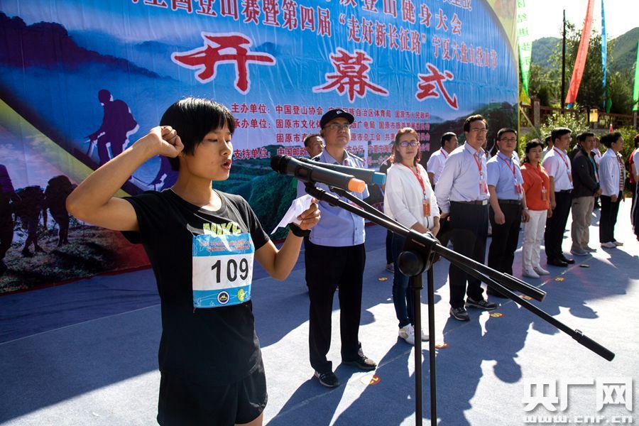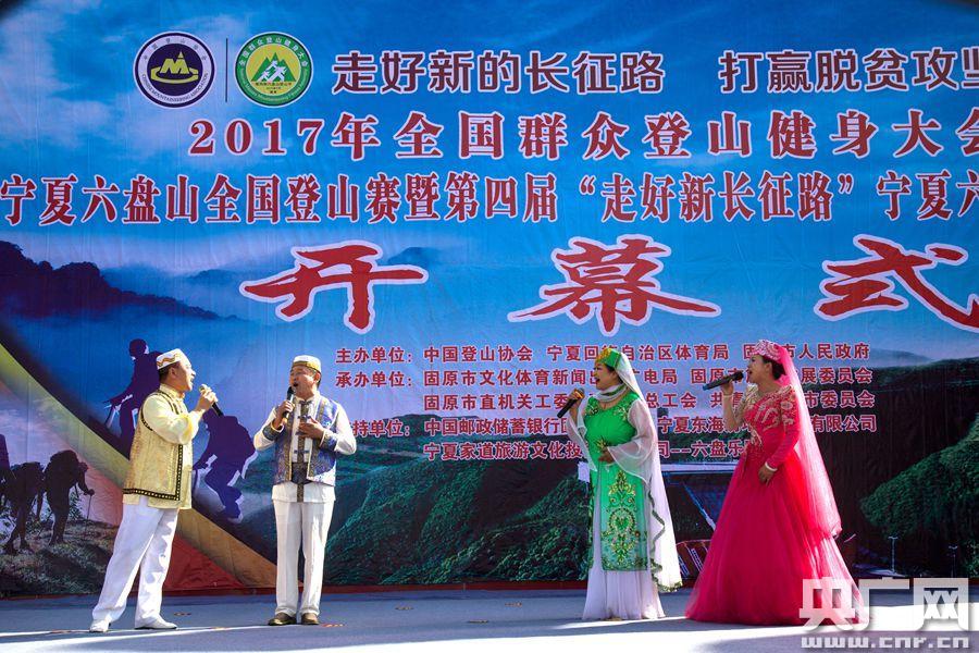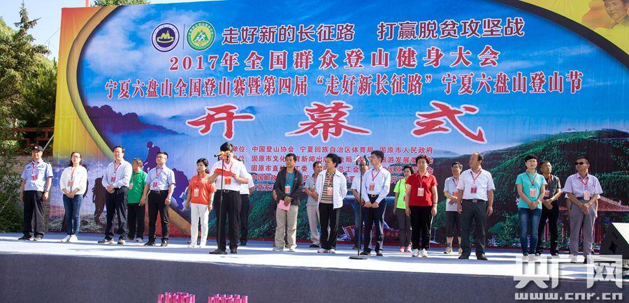 開幕式 央廣網(wǎng)固原7月17日消息 (記者許新霞 通訊員祁學(xué)斌攝)7月16日,2017年全國群眾登山健身大會寧夏六盤山全國登山賽暨第四屆“走好新長征路”寧夏六盤山登山節(jié)開賽。賽事分為競賽組和健身組,競賽組登山路程全長18.5公里,健身組路程7公里。來自全國20多個(gè)省區(qū)市的200名登山運(yùn)動(dòng)員及1800名登山愛好者參加了比賽。最終,32名隊(duì)員獲得競賽組個(gè)人獎(jiǎng)。 -