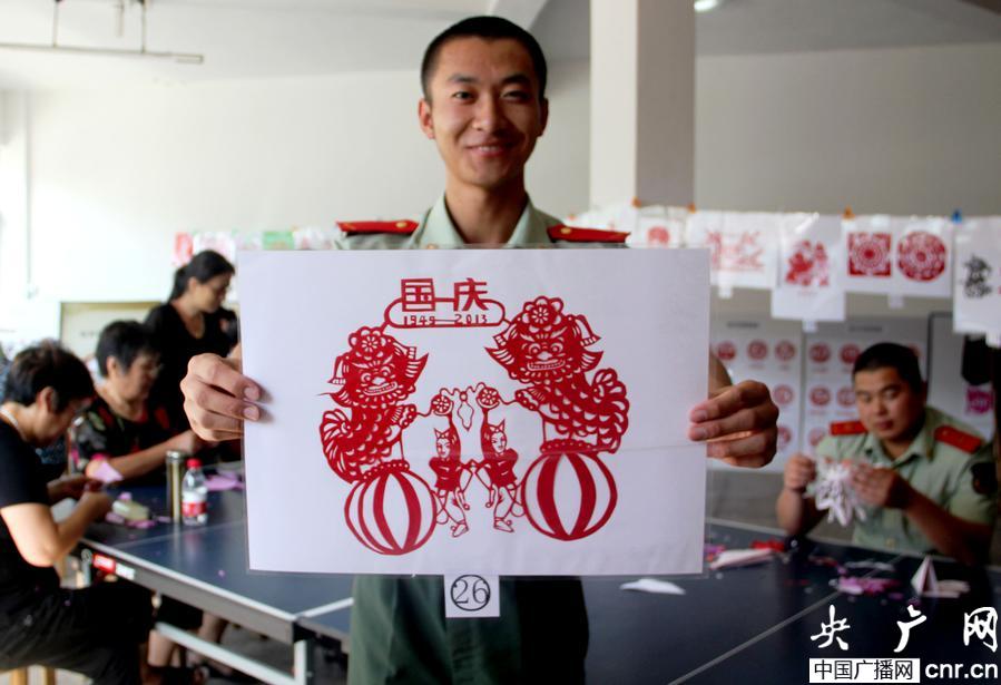 浙江海警二支隊官兵與駐地寧波市北侖區(qū)小港街道,組織轄區(qū)內的剪紙愛好者,創(chuàng)作以“國慶”為主題的剪紙作品