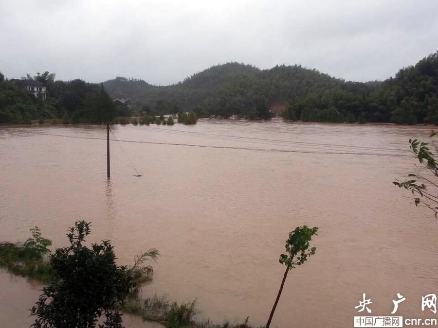 受今年第19號(hào)超強(qiáng)臺(tái)風(fēng)“天兔”的影響,湖南省常德市普降大暴雨,造成鼎城區(qū)各鄉(xiāng)鎮(zhèn)普遍被淹受災(zāi)。(央廣網(wǎng)發(fā) 張孝軍 李瑜 攝)