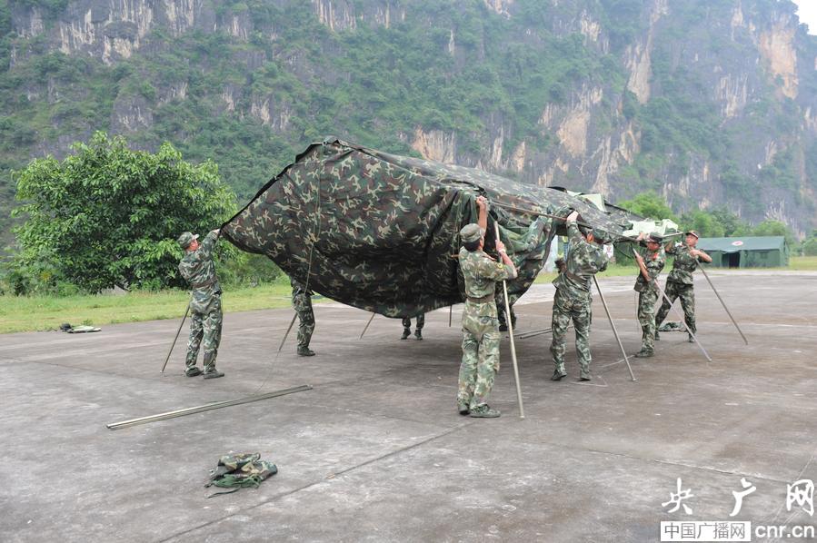 戰(zhàn)地帳蓬搭建(央廣網(wǎng)記者 李健飛 攝)