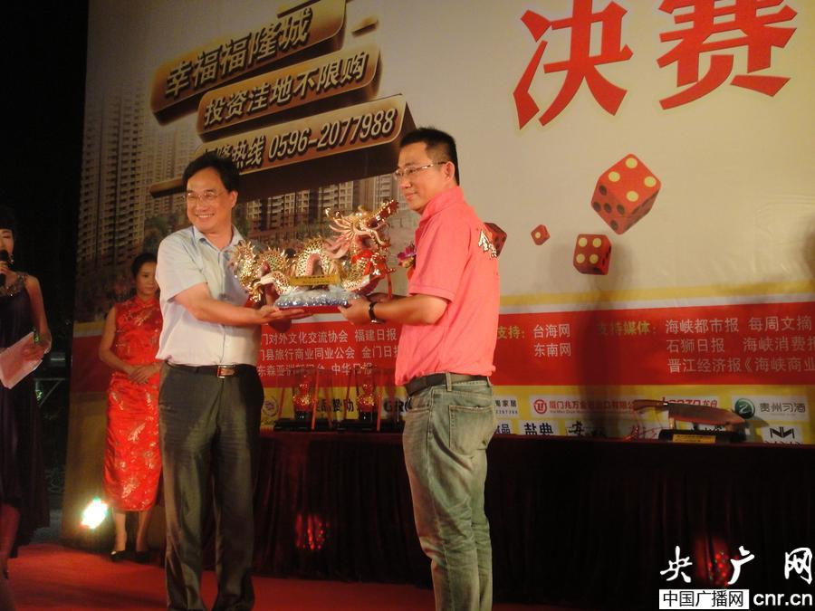 央廣網(wǎng)廈門10月10日消息(記者 郭婕妤 陳庚)海峽兩岸中秋博餅狀元王中王總決賽昨晚在廈門牛頭山博餅民俗園舉行,來自金門的周佳弘以“五子帶六”博得狀元王中王,贏得一輛價值近37萬元的凱迪拉克轎車。