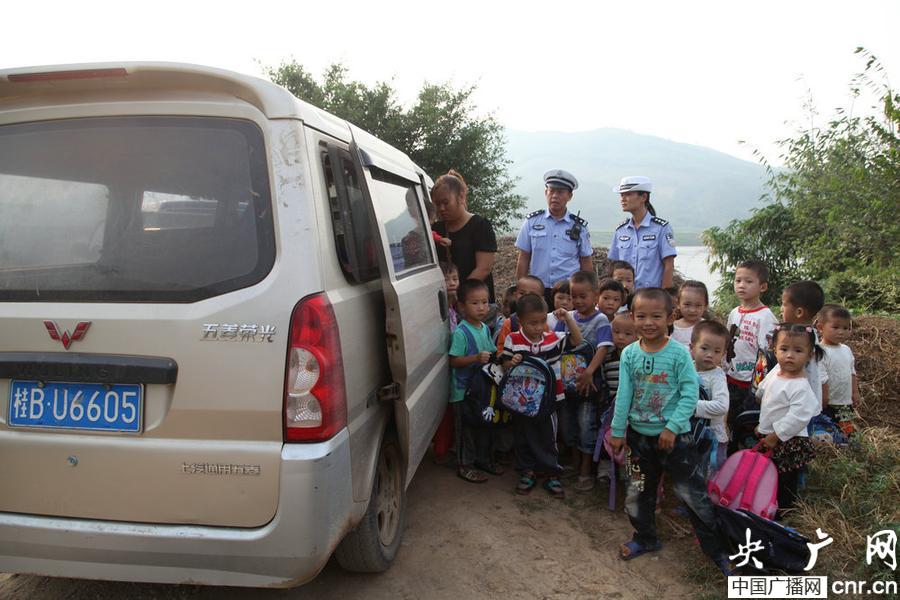 近日,廣西柳州市鹿寨縣交警部門查獲一輛嚴(yán)重超員的面包車。(央廣網(wǎng)發(fā) 吳漩漩 攝)