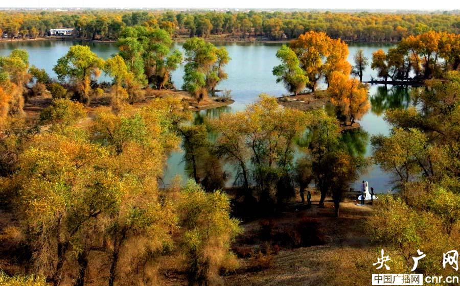 沙雅縣居民武生活說(shuō):“我第一次來(lái)到太陽(yáng)島,來(lái)看胡楊林,這是我見(jiàn)到的面積最大的胡楊林,望著一望無(wú)際的胡楊林,心情特別高興,特別愉快。”