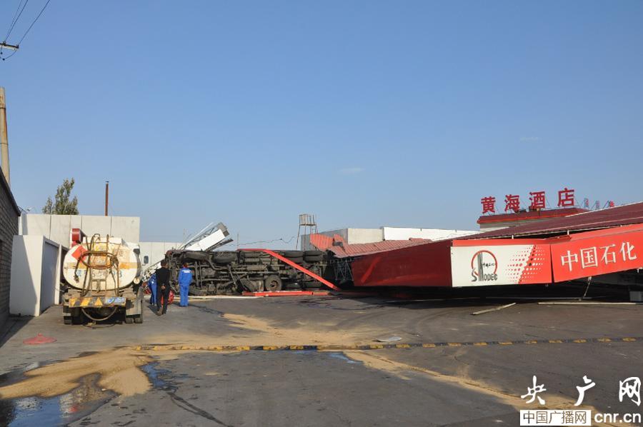 央廣網(wǎng)銀川10月22日消息(記者廉軍 通訊員徐飛 楊航)昨天下午16時(shí),在寧夏寧東古窯子中石化加油站一輛大貨車撞倒加油站并撞向油庫(kù),有人員被困。寧東消防24名官兵緊急救援,沒有發(fā)生起火爆炸險(xiǎn)情。