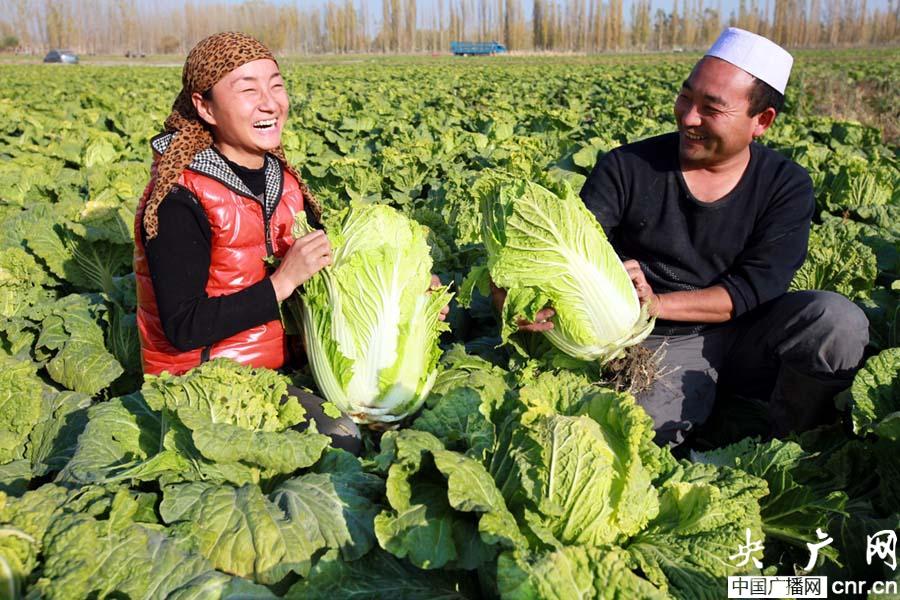 新疆焉耆回族自治縣菜農喜上眉梢(央廣網記者 張雷 攝)