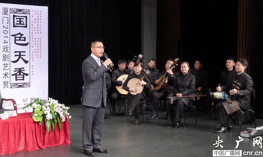央廣網(wǎng)廈門3月14日消息(記者周步恒 陳庚 通訊員吳珊雅)由閩南大戲院主辦的“國(guó)色天香——廈門2014戲劇藝術(shù)賞”系列活動(dòng)昨天(13日)啟動(dòng),著名京劇表演藝術(shù)家、國(guó)家京劇院三團(tuán)團(tuán)長(zhǎng)張建國(guó)在隨后舉辦的京劇知識(shí)講座上表示,京劇不改革沒有出路,應(yīng)該在保持原汁原味的基礎(chǔ)上,融入其它元素。