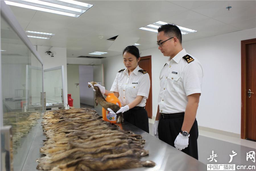深圳羅湖海關人員此次共計繳獲水貂皮43條(央廣網記者 鄭柱子 攝)