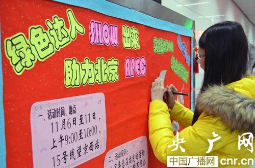 央廣網(wǎng)北京11月8日消息(記者李單)日前,北京地鐵15號線望京西站工作人員向乘客發(fā)出了首張自制的“綠色出行我先行”積分卡,這標(biāo)志著15號線馬泉營站區(qū)開展的“綠色達人SHOW出來,助力北京APCE”主題活動正式啟動。該活動主旨是向乘客宣傳“3510”綠色出行理念,即“3公里步行、5公里騎行、10公里公交”,倡導(dǎo)市民低碳出行。