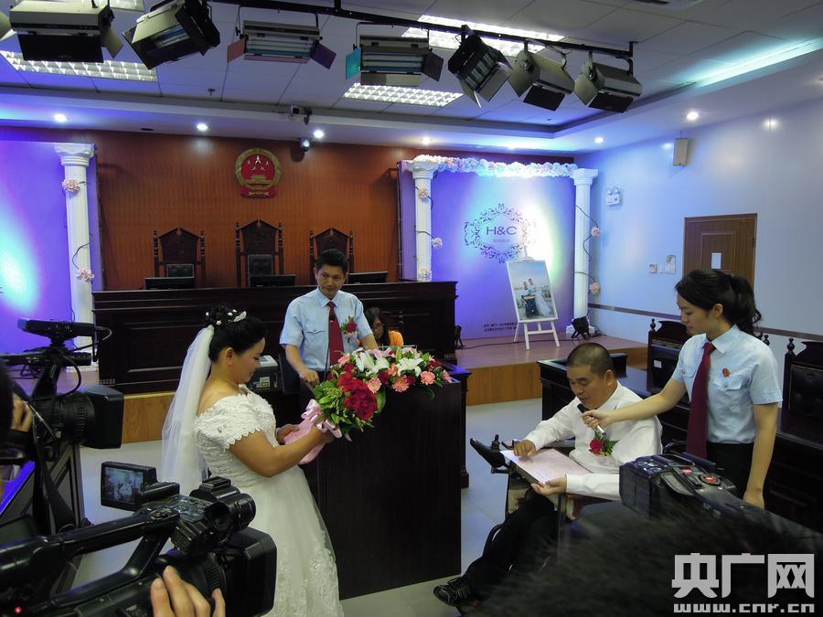 廈門海滄區(qū)人民法院家事法庭舉辦第一場(chǎng)法庭婚禮(央廣網(wǎng)記者 呂貝娜 攝)