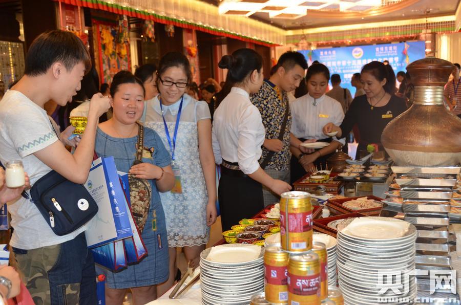 參加推介會的四川省內(nèi)旅游社、媒體代表和成都市民正在品嘗高原美食。(央廣網(wǎng)記者 德慶白珍 攝)