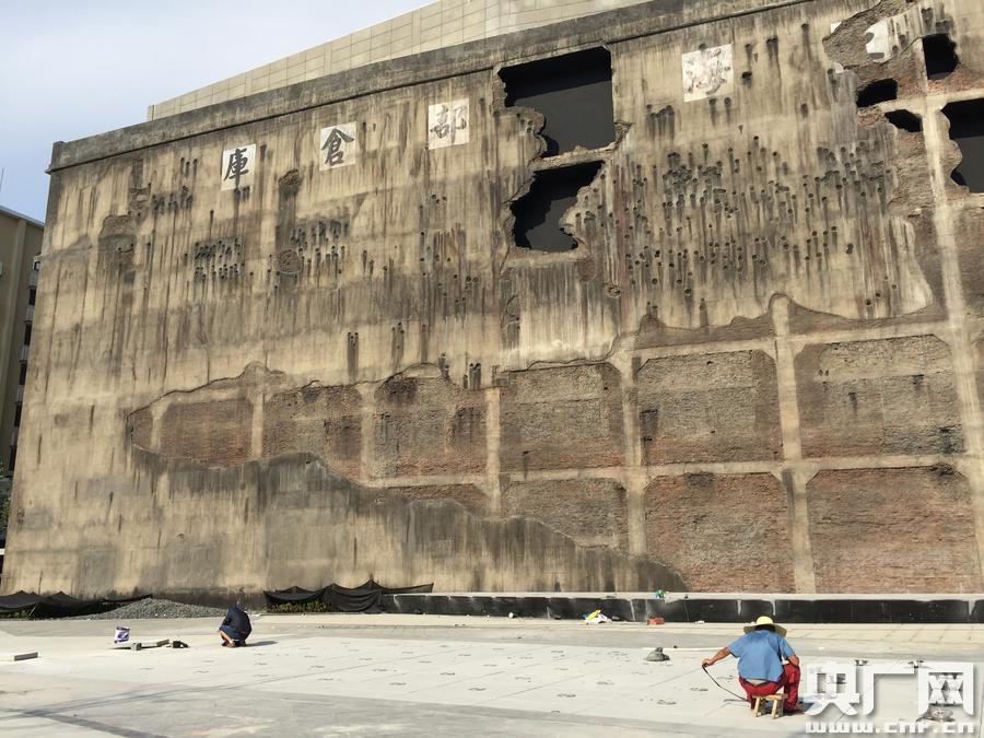 目前修復(fù)完成的“西墻”,共保留呈現(xiàn)了1937年四行保衛(wèi)戰(zhàn)中日軍炮擊形成的8個(gè)主要的炮彈孔和430余個(gè)槍眼彈點(diǎn)。(央廣網(wǎng)發(fā) 傅聞捷 攝)