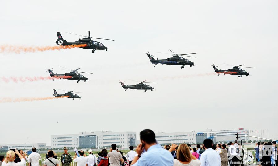 直升機(jī)飛行表演是歷屆直博會(huì)的重頭戲。第三屆中國(guó)天津國(guó)際直升機(jī)博覽會(huì)期間,中航工業(yè)直升機(jī)設(shè)計(jì)研究所和中航工業(yè)昌飛集團(tuán)研制的直-10、直-19武裝直升機(jī)和AC311、AC312、AC313系列民用直升機(jī)悉數(shù)參加飛行表演,吸引了眾多觀眾的眼球