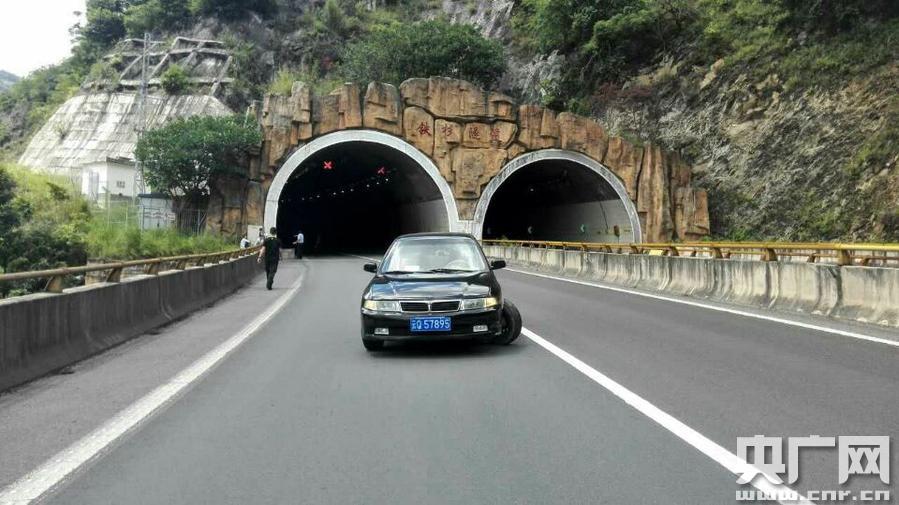 轎車高速隧道口剎車失靈 司機一家四口受驚嚇呆站一旁(央廣網(wǎng)發(fā) 李騰飛 攝)