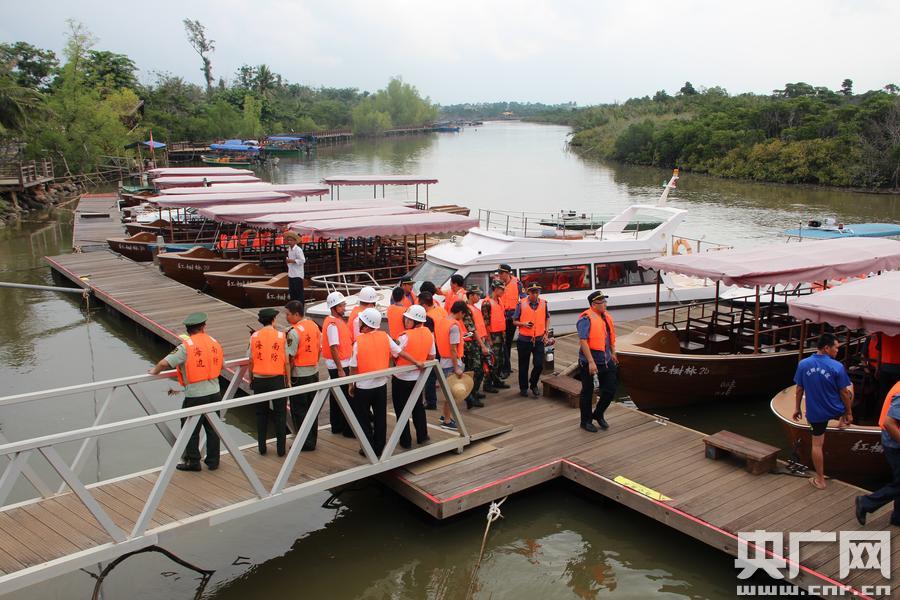 隨著東寨港紅樹林景區(qū)旅游熱的持續(xù)升溫,旅客的逐漸增多,受經(jīng)濟利益的驅(qū)使,自2014年以來,東寨港紅樹林景區(qū)周邊部分漁民組織漁船甚至是“三無”船只陸續(xù)進入景區(qū),參與非法載客營運,存在嚴(yán)重安全隱患。為徹底解決景區(qū)內(nèi)“三無”船只非法運營的亂象,?谑姓闪⒘藢m椪晤I(lǐng)導(dǎo)小組,開展“三無”載客船只集中清理行動。清理行動當(dāng)中,海事聯(lián)合漁政、交通、邊防等相關(guān)職能單位開展紅樹林景區(qū)水域的巡查執(zhí)法,清理非法載客“三無”船只,清除礙航漁網(wǎng)、漁柵,維護景區(qū)水域航行安全秩序。